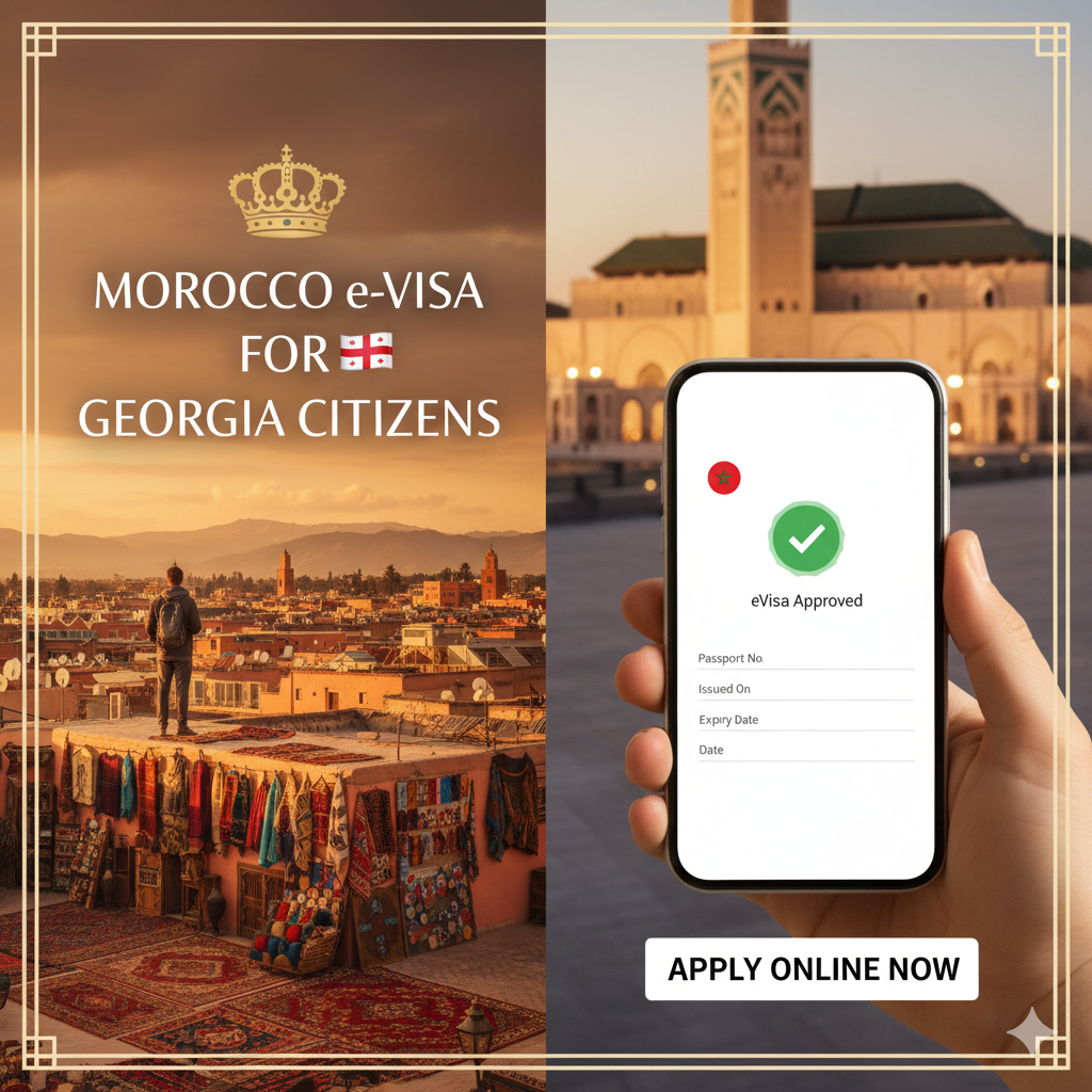 The Morocco e-Visa allows citizens of Georgia to apply online for short-term travel to Morocco for tourism or business purposes. The application process is fully online and requires a valid passport, a recent photograph, and basic travel details. Once approved, the e-Visa is sent by email and usually permits a stay of up to 30 days, making it a simple and convenient option for Georgian travelers planning a visit to Morocco.